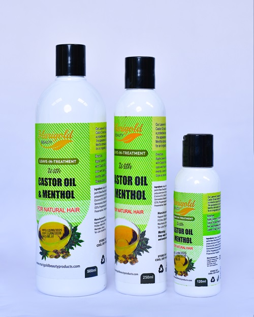 Give your hair and scalp the natural boost it deserves with MariGold Castor Oil & Menthol. This powerful blend combines the nourishing strength of castor oil with the cooling refreshment of menthol to stimulate the scalp, strengthen roots, and promote healthy hair growth.