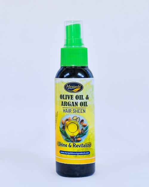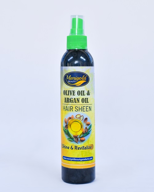 Experience the luxurious shine and deep nourishment of MariGold Sheen Spray Argan & Olive Oil. Expertly crafted with a blend of premium Argan and Olive Oils, this lightweight spray delivers an instant, radiant shine while deeply moisturizing and protecting your hair.