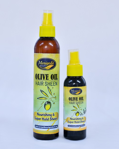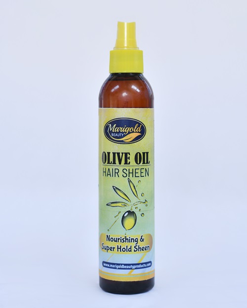 Elevate your hair care routine with MariGold Olive Oil Sheen Spray — for hair that shines with health and confidence!